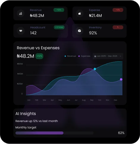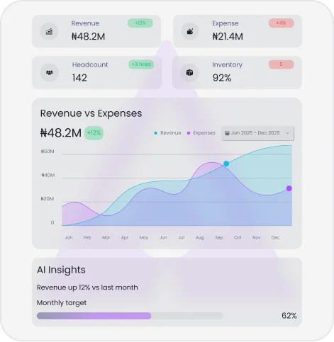 Automate HR, finance, inventory, and operations from one intelligent dashboard.